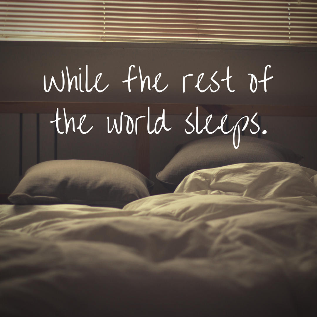 And while the rest of the world sleeps, I will take this time with you, As a precious gift, Seeing all that you do.